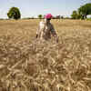 खेत में अपनी गेहूं की फसल देखता हुआ किसान