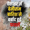 देशभर में मौसम की मार से खेती-किसानी पर बुरा असर पड़ा है। बेमौसम बारिश और ओलावृष्टि ने जम्मू-कश्मीर, पंजाब, महाराष्ट्र, राजस्थान और हरियाणा जैसे राज्यों में खड़ी फसलों को भारी नुकसान पहुँचाया है। किसानों की चिंता बढ़ गई है। सरकारें नुकसान का आकलन कर मुआवजे की तैयारी में जुटी हैं। विशेषज्ञ इसे जलवायु परिवर्तन का प्रभाव बता रहे हैं।