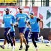 भारतीय फिजियो पैट्रिक फरहार्ट व विराट कोहली। भारतीय कप्तान की जगह टीम में चुने गए श्रेयस अय्यर आज सुबह ही यहां पहुंचे और उन्होंने बाद में अभ्यास किया। अय्यर के नेट पर अभ्यास पर कोच अनिल कुंबले और कोहली ने करीबी नजर रखी। भारतीय कप्तान ने मुंबई के इस युवा बल्लेबाज से बात भी की। अगर कोहली नहीं खेल पाते हैं तो फिर अंजिक्य रहाणे टीम की अगुवाई करेंगे।